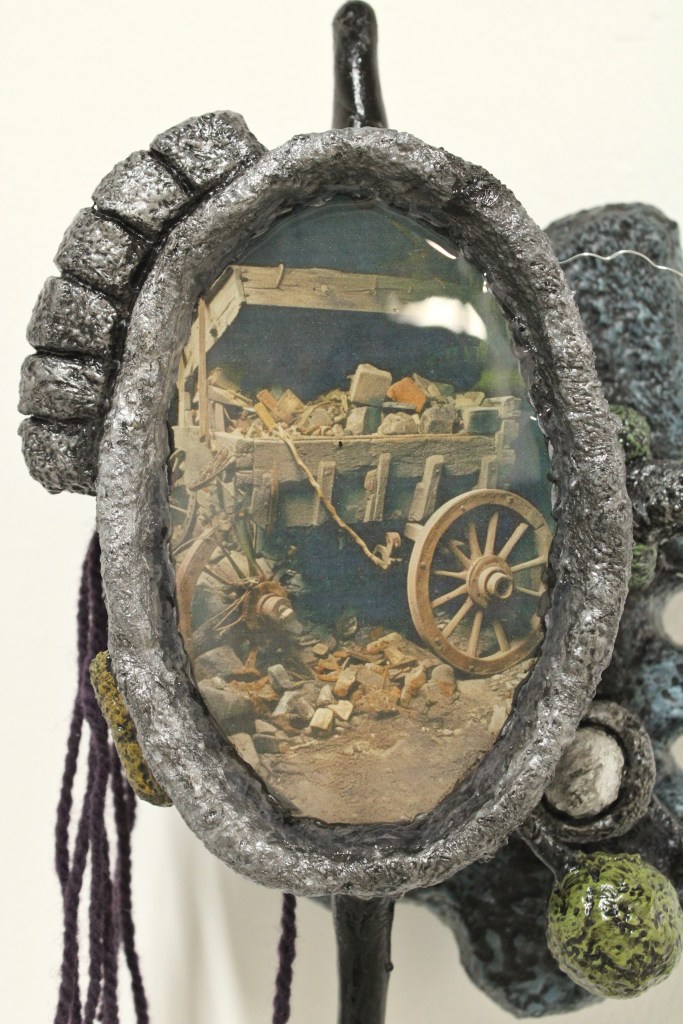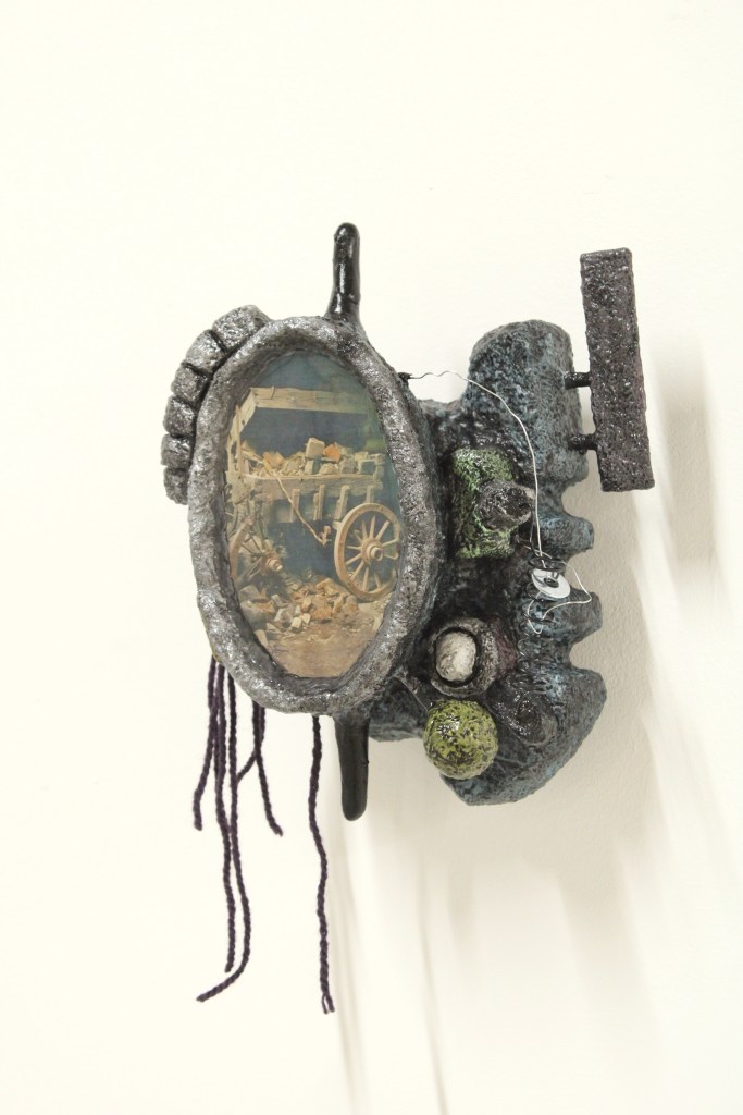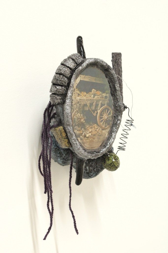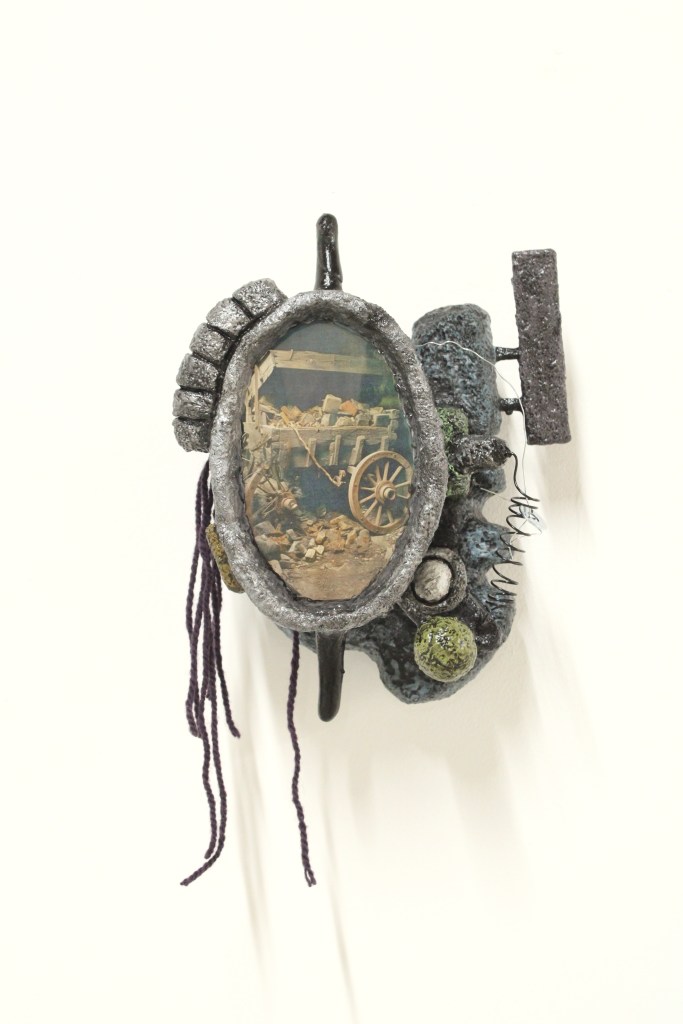 Polystyrene, wood, steel, digital print, polyurethane resin, clay, jesmonite, thermoplastic, wool, acrylic, sealant. 22 x 17 x 12cms. 2024.