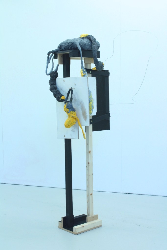 Wood, silicone, parcel tape, paper, wire, emulsion, plaster, varnish. 2017.