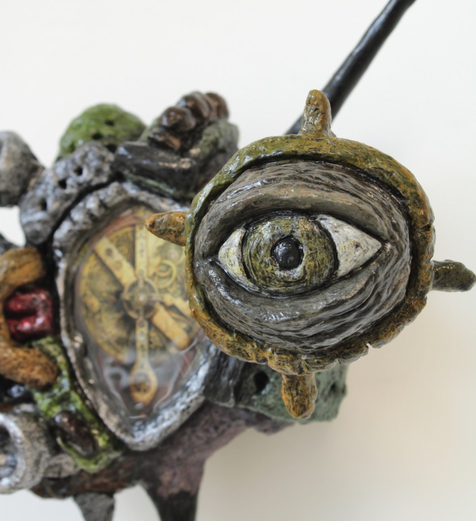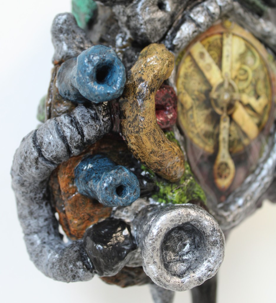 Polystyrene, jesmonite, clay, thermoplastic, wood, steel, digital print, polyurethane resin, epoxy resin, pigment, acrylic, sealant. 29 x 19 x 16 cms. 2023.
