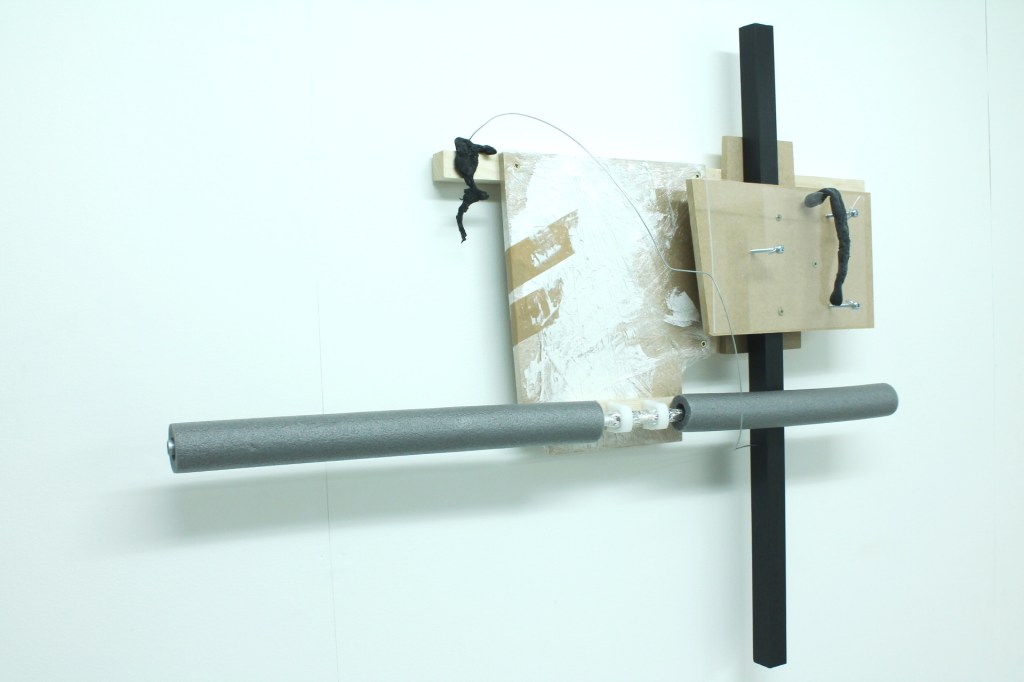 Wood, perspex, silicone, wire, aluminium tube, foam, cling film, emulsion, plaster, cling film, parcel tape. 2016.