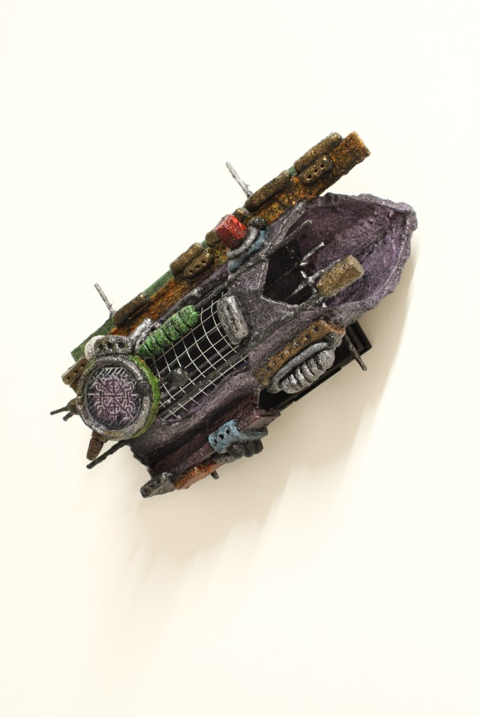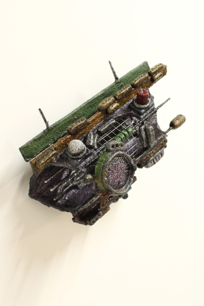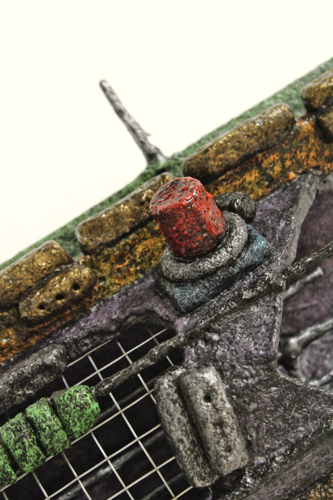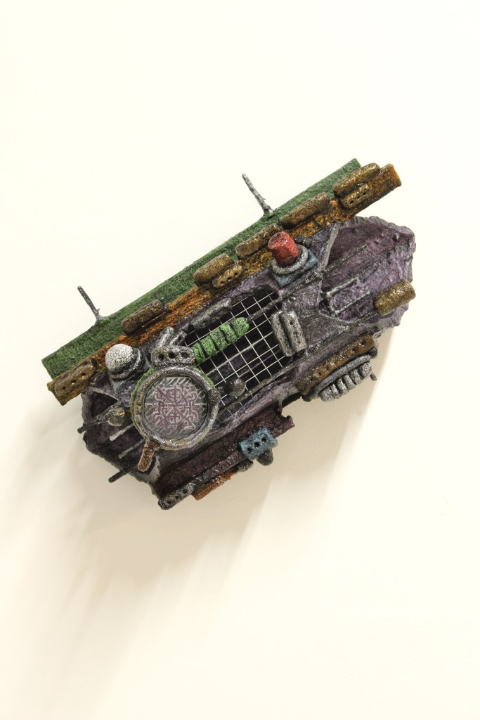 Wood, cardboard, wire mesh, clay, jesmonite, digital print, polyurethane resin, pigment, acrylic. 40 x 20 x 19cms. 2023.