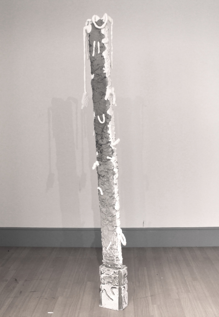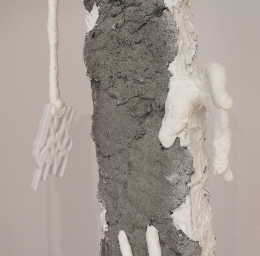 Wood, mesh wire, concrete, silicone, 3d print. 196 x 25 x 13 cms. 2018.