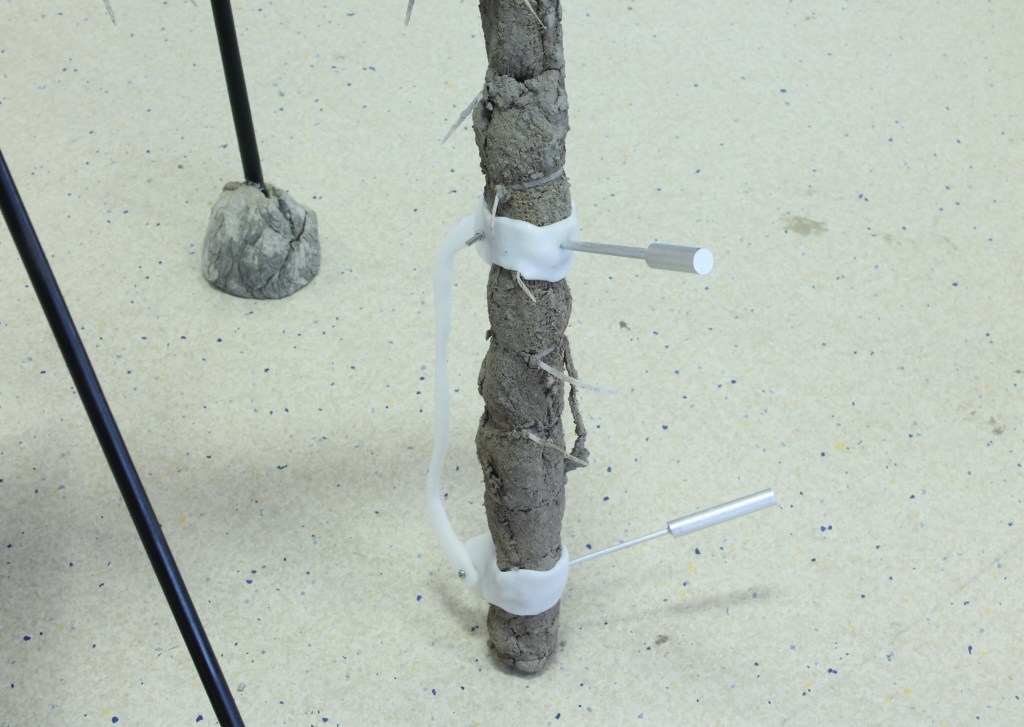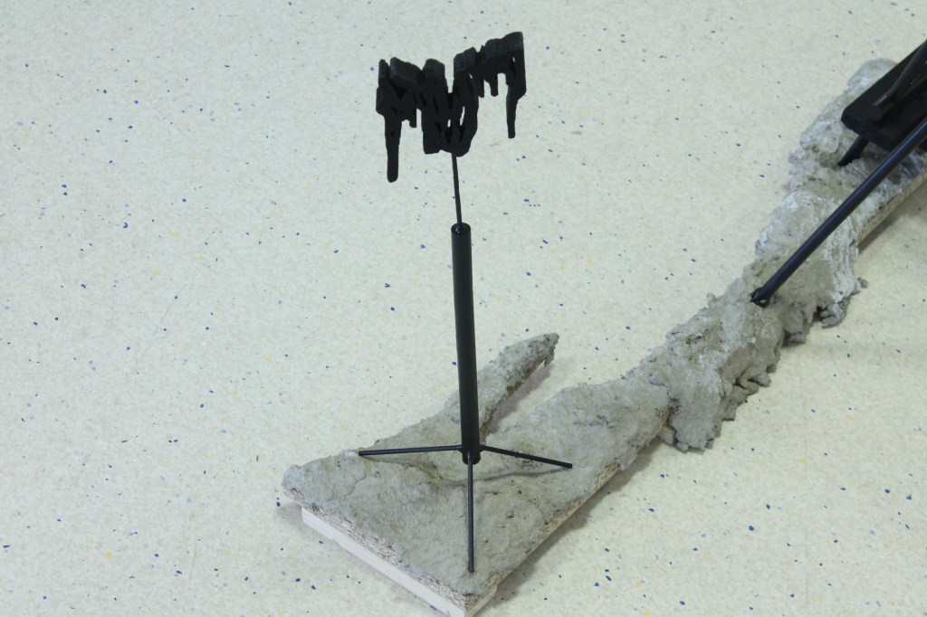 Hessian, cement, concrete, thermoplastic, dowel, chipboard, zip ties, 3D print, spraypaint, sponge. 2018.