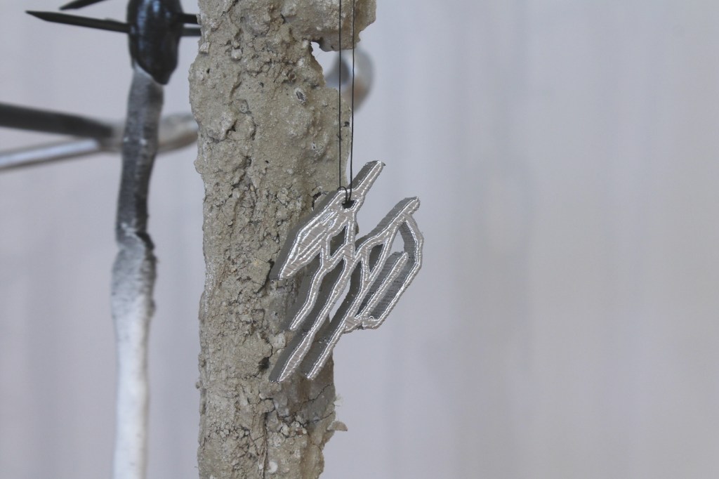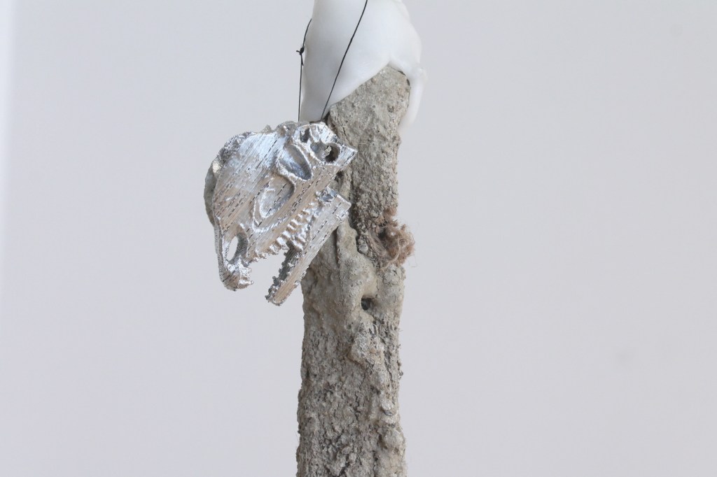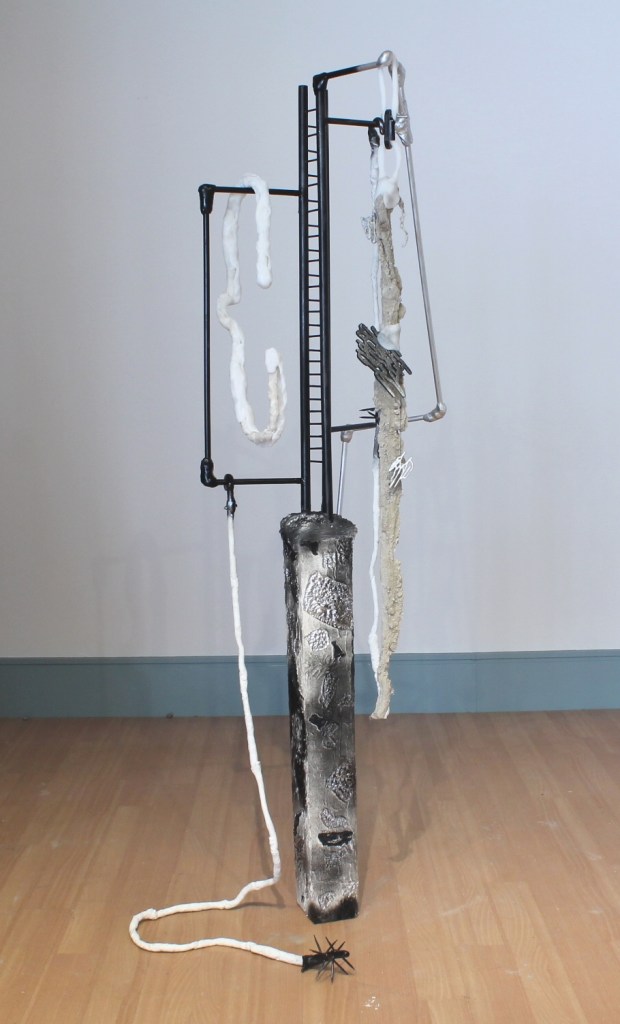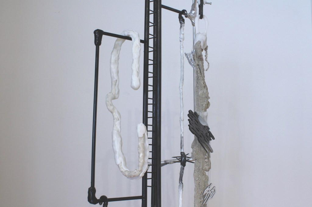 Concrete, hessian, plaster, aluminium, silicone, borax, pva, thermoplastic, wood, bolts, 3D prints, thread. 177 x 58 x 50 cms. 2018.