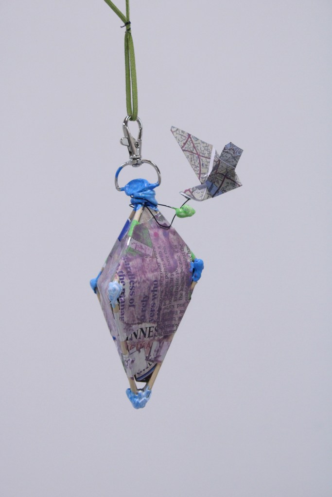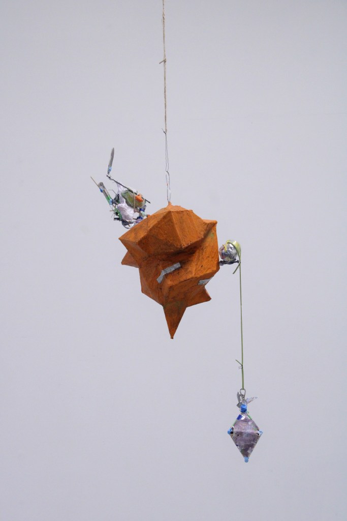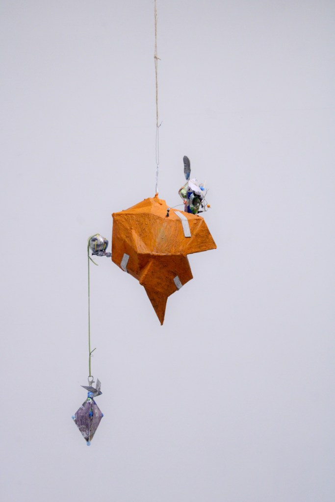 Card, jesmonite, thermoplastic, bolts, screws, tinfoil, glue, wood, wire, sellotape, newsprint, digital print, foil tape, leatherette, magnet, steel, hacksaw blade, acrylic, pigment, sealant. 69 x 31 x 29 cms. 2026.