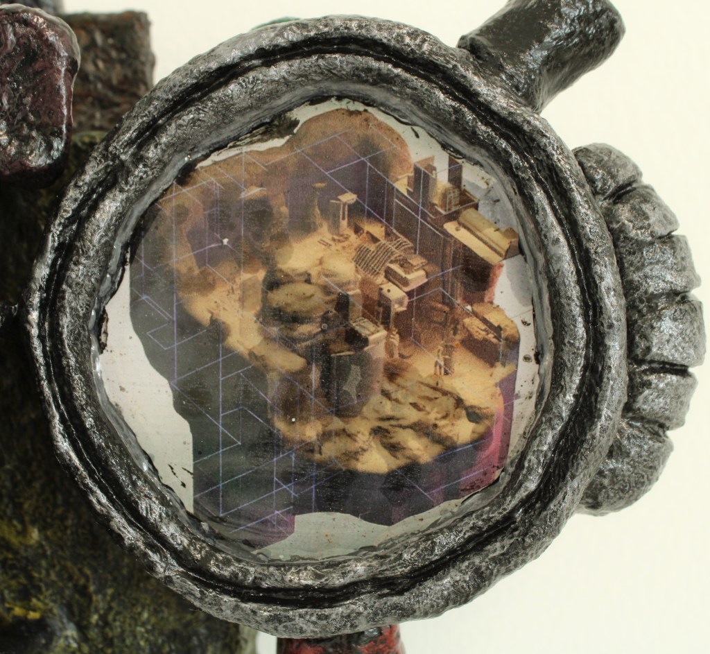 Cardboard, wood, polystyrene, jesmonite, clay, digital print, polyurethane resin, pigment, acrylic, sealant. 26 x 19 x 14cms. 2023.